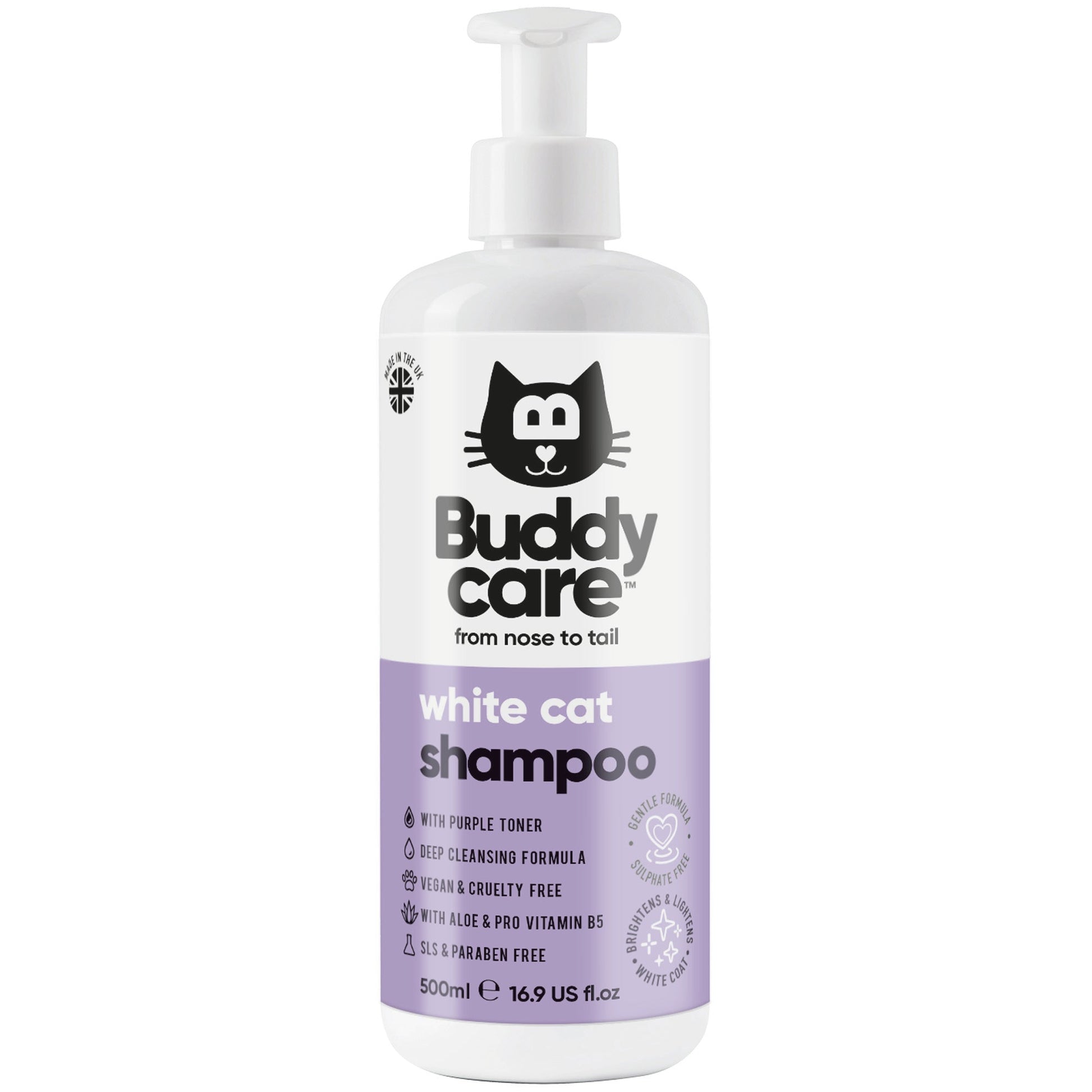 Buddycare’s White Cat Shampoo is specially formulated to brighten and lighten white coats, so even if your cat isn't called ‘Snowflake’ they might just earn the nickname! And don't worry - the shampoo’s purple colour is all part of the magic!