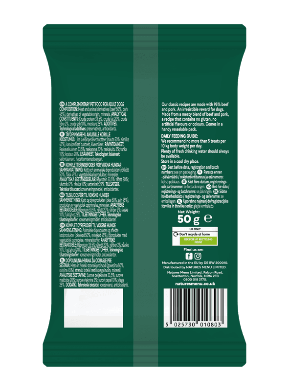Natures Menu Meaty Treats For Adult Dog Beef And Pork 50G